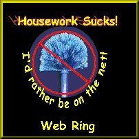 This The Housework Sucks, Gimme the Net Web Ring housework hating site is owned by Web Site Manager. Wouldn't you love to avoid your housework by joining this great web ring?